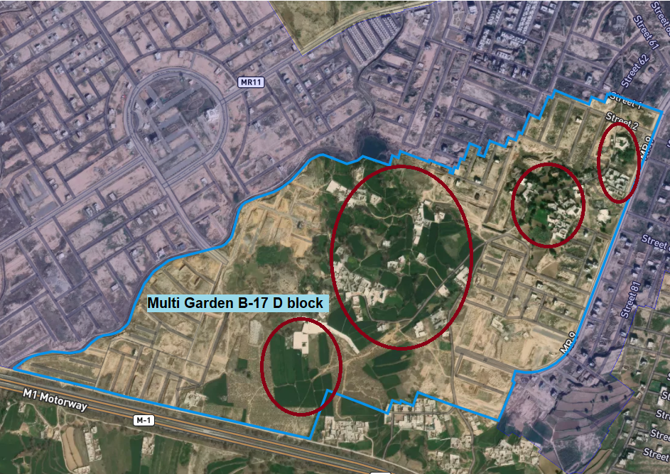 Multi Gardens Phase 1 (Sector B-17), developed by MPCHS in 2004, is a well-planned residential project located near the GT Road and M-1 Motorway in Islamabad. The society is divided into several blocks, including A, B, C, C-1, D, E, F, and G—each offering a range of residential plots with access to parks, commercial areas, and essential facilities. Its scenic location near the Margalla Hills and rapid development make it a popular choice for both living and investment.